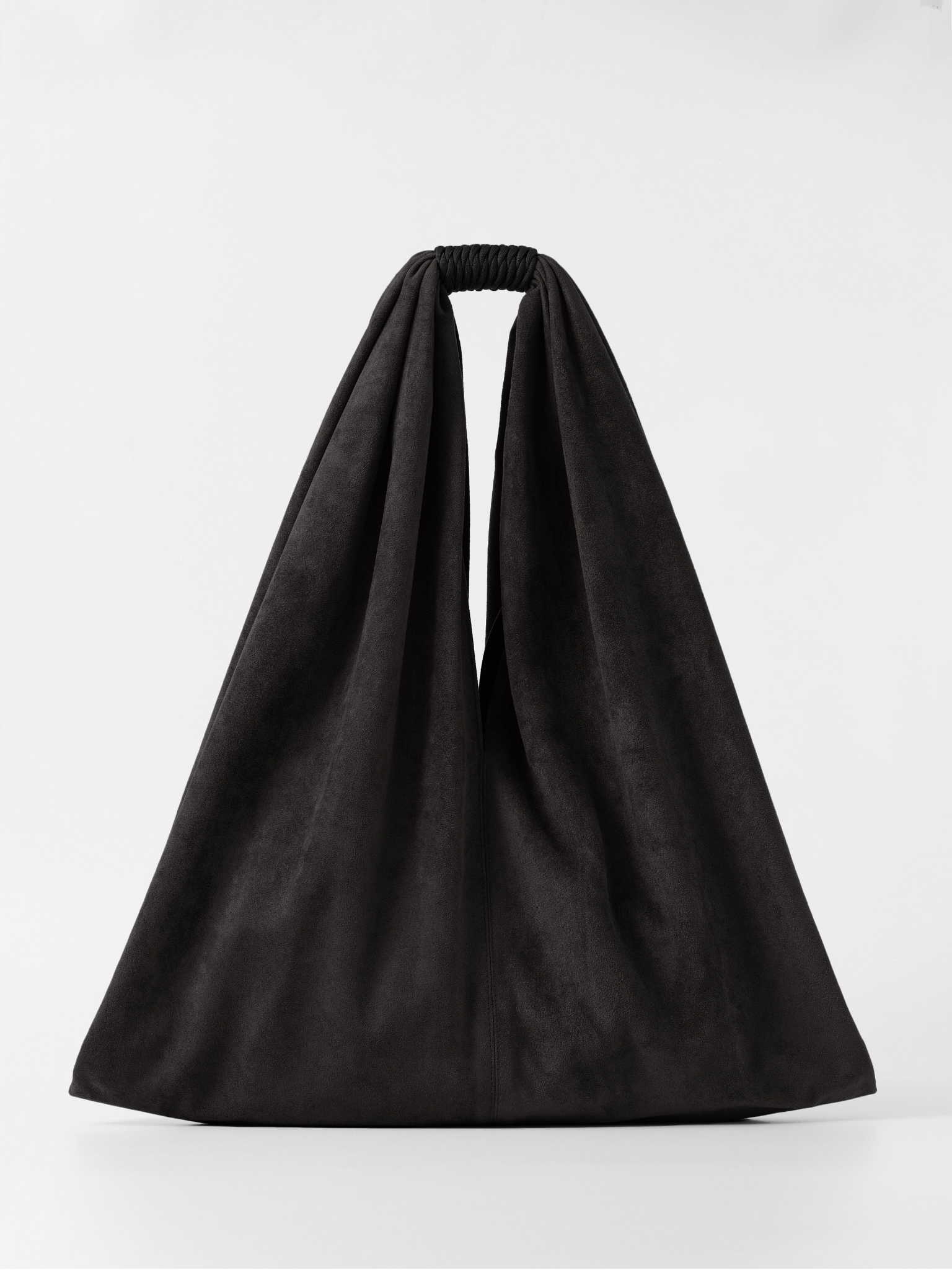 The Unnamed Slouch by MUUNSAN carries more than it appears—generous in space yet effortlessly fluid in form. Crafted from velvety, with a suede-like fabric, it feels soft to the touch while remaining remarkably lightweight.