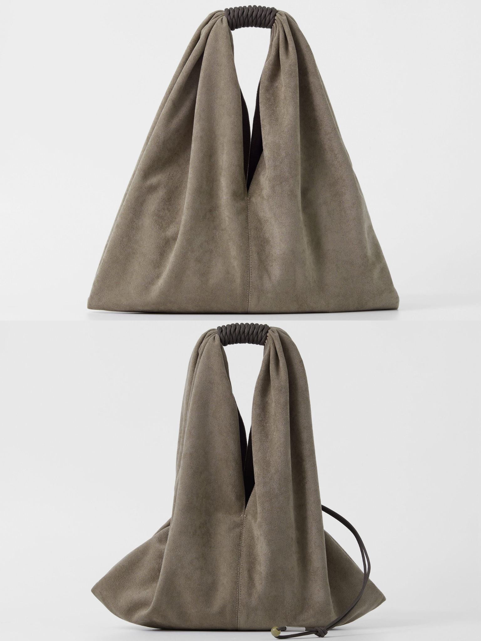 The Unnamed Slouch by MUUNSAN carries more than it appears—generous in space yet effortlessly fluid in form. Crafted from velvety, with a suede-like fabric, it feels soft to the touch while remaining remarkably lightweight.